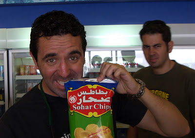 Si no consigues ver las constelaciones, una shisha (cachimba) puede ayudar. El nombre correcto es hookah (del hindú). Aunque para ser sincero, lo único que tienen es tabaco con sabor a manzana, menta o naranja. En Omán, aparte de las bebidas alcohólicas que puedes comprar en unos pocos sitios (si tienes licencia) o beber en unos cuantos restaurantes y garitos, ni siquiera puedes comprar alcohol de quemar en la farmacia o medicinas que den sueño, como la Couldina® (salvo algunas con receta).Por supuesto, nosotros nos trajimos nuestras cervecitas, nuestras aceitunas, jamón (cortesía de unos amigos recién venidos de España), etc. Todo al calor del fuego, ya que por la noche baja la temperatura, y con música bedu en directo. Es muy rítmica, muy africana. El vídeo con comentarios y música y baile bedu (28 seg.) os lo podéis saltar si no os apasiona el tema (pero os perdéis el ¡páralo Paul!).