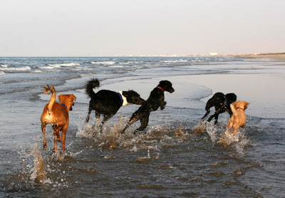 El patrulla no se quedó en la arena. Nos llevó al final de la Thunder Road y más allá. A la vuelta del desierto, para alegría de Charlie (abajo derecha), la llevamos a la playa de los cangrejos: